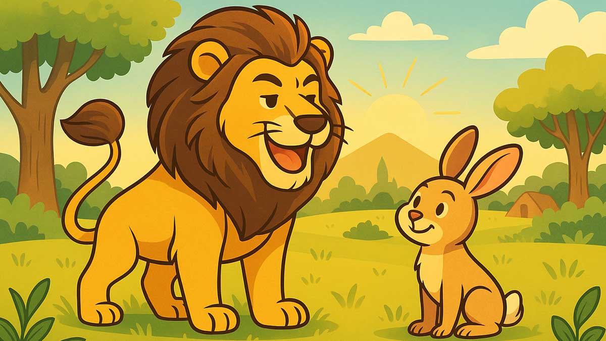 เนื้อเรื่อง: สิงโตหิวและต้องการล่าสัตว์ มันเห็นกระต่ายตัวหนึ่งแต่คิดว่ายังเล็กเกินไปจึงปล่อยมันไปเพื่อหาสัตว์ที่ใหญ่กว่า แต่เมื่อกลับมา กระต่ายก็หนีไปแล้ว สิงโตจึงต้องอดอาหาร