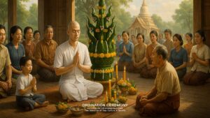 - กิจกรรม: การโกนผมนาค แห่นาค และการบวชในวัด