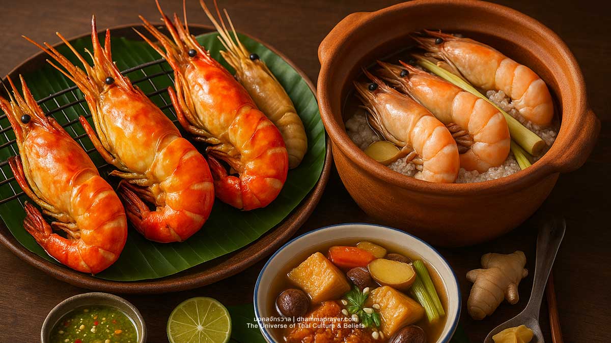 เหตุผลที่ควรมี: เชื่อว่าการรับประทานกุ้งช่วยเสริมบารมีและความสำเร็จ